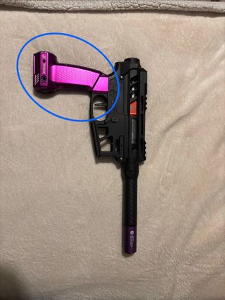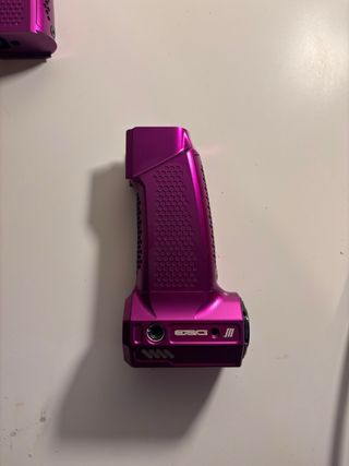 Punho de alumínio com acabamento roxo para Wolverine Heretic Labs Article II. - Design com padrão hexagonal. - Cor roxa metálica vibrante.