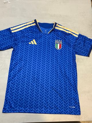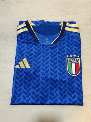 Camisola da seleção italiana de futebol. Possui um design moderno com padrão em relevo e detalhes dourados nas mangas e gola. - Cor: Azul - Logo em dourado - Escudo da Itália - Tecnologia Clima Cool