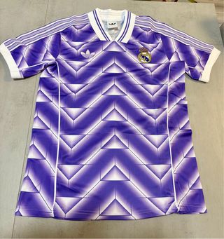Camisola especial do Real Madrid em tamanho L. Design único e vibrante. - Cor: Roxo e branco - Tamanho: L - Logo e emblema do Real Madrid