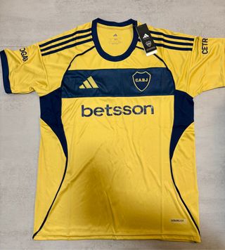 Camisola alternativa do Boca Juniors, tamanho L. Design moderno com as cores tradicionais do clube. - Logo - Escudo do CABJ. - Patrocínio betsson. - Detalhes em azul marinho nas mangas e laterais. - Tecnologia AEROREADY.