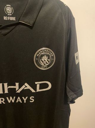 Camisola oficial do Manchester City, com o patrocinador Etihad Airways. - Cor preta - Logo da Puma - Escudo do Manchester City - Tamanho L
