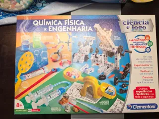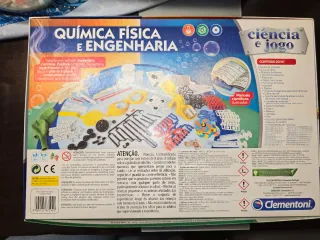 Kit de ciência Clementoni Química Física e Engenharia. Permite realizar diversas experiências científicas. - Monta modelos mecânicos. - Constrói moléculas em 3D. - Cria soluções homogêneas e heterogêneas. - Descobre a densidade da água e do ar. - Diverte-te com os pesos e as medidas. - Fabricado em Itália.