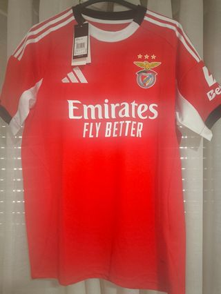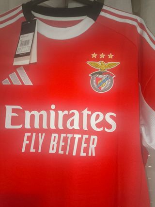 Camisola de futebol do Benfica, tamanho L, da marca Adidas. Está em excelente estado. - Camisola oficial do Sport Lisboa e Benfica. - Tamanho L. - Marca Adidas. - Cor vermelha.
