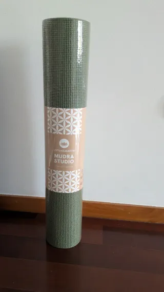 Novo Tapete de yoga da marca Lotuscrafts, modelo Mudra Studio. Cor verde. - Textura antiderrapante.