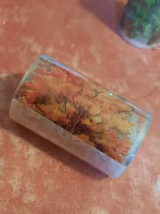 Rolo de fita washi com um design de árvores em tons outonais, evocando um cenário de floresta. Perfeito para scrapbooking, journaling ou decoração. - Design: Árvores e Floresta - Dimensões: 60mm x (2m de comprimento total) - Tema: Paisagem de floresta com árvores em cores de outono