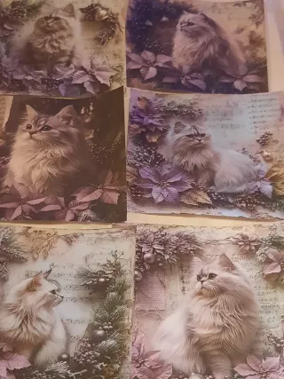 Conjunto de 12 folhas de papel com tema de gato e Natal. Perfeito para trabalhos manuais e decorações festivas. 15x15cm - Design com gatos adoráveis. - Motivos natalícios com flores e notas musicais. - Ideal para scrapbooking, cartões e embrulhos.