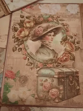 Conjunto de 10 folhas A5 com 20 gravuras em estilo retro e vintage. Perfeitas para projetos de scrapbooking, artesanato ou decoração. - 10 folhas no formato A5. - 20 gravuras com design vintage. - Estilo retro com motivos florais e elementos clássicos.