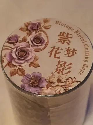 Fita washi com um design delicado de flores e arabescos em estilo vintage. - Padrão floral com rosas e flores menores. - Detalhes em arabescos e folhas. - Estilo vintage e romântico.