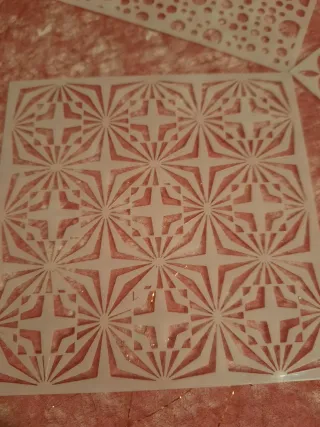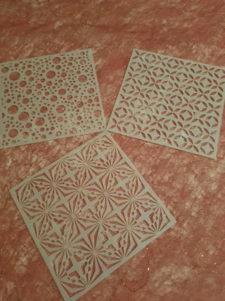 Conjunto de 3 folhas de stencil com padrões abstratos para artesanato. -Sem uso, 14,8 x 14.8cm - Ideal para diversas técnicas de artesanato. - Padrões geométricos e linhas. - Material durável para uso repetido. 3