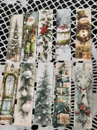 Conjunto de 35 marcadores de livro com tema de Natal. - Designs variados com figuras natalinas. - Ideal para amantes de leitura e decoração temática.