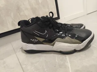 Sapatilhas Nike Air Zoom em preto. - Design moderno e desportivo. - Detalhes em branco e cinza. - Logótipo Nike visível.