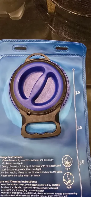Saco de água azul para atividades desportivas, com capacidade de 2.5 litros. Inclui tubo de hidratação. - Capacidade: 2.5L - Cor: Azul - Material: TPU - Tubo de hidratação incluído - Fecho de rosca para fácil enchimento e limpeza