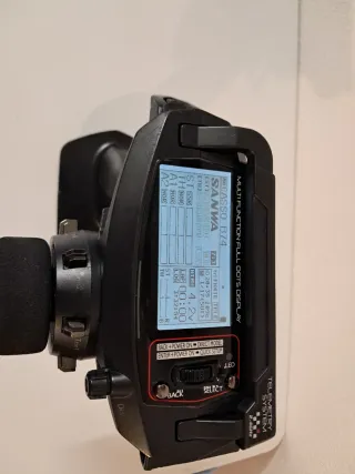 Transmissor Sanwa MT44. - Design ergonómico. - Roda de direção com boa aderência. - Marca Sanwa. - Com manual em inglês. - Fornecido com suporte de pilhas 3AAA Informo que nao tem nenhum problema com o seletor do menu. Está em perfeito estado.