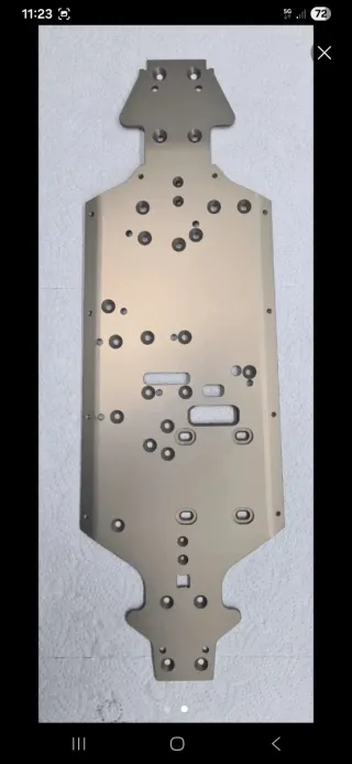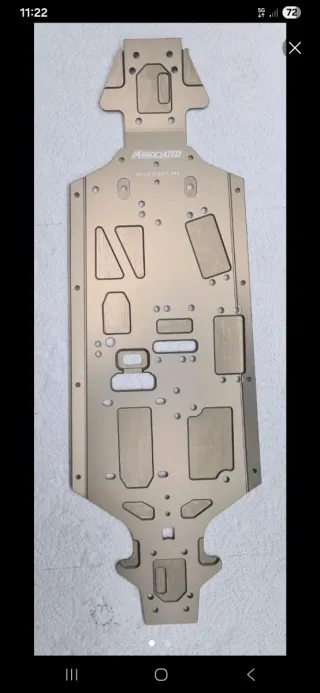Chassi para modelo RC8B4 RWB. - Material em metal. - Design com recortes para componentes.