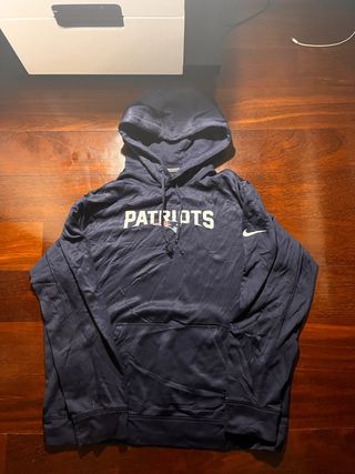 Hoodie oficial do New England Patriots, modelo de 2013. - Cor azul marinho. - Logo da Nike na manga.