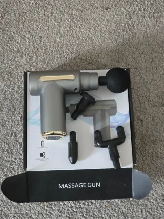 Pistola de masaje, ideal para la recuperación muscular y la relajación. - Diseño ergonómico y moderno. - Incluye varios accesorios para diferentes tipos de masaje. - Batería de larga duración para uso prolongado. - Funcionamiento silencioso y suave.