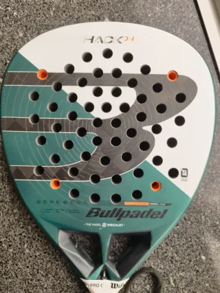 Raquete de padel Head Hook Platinum Gold Edition. Design moderno e arrojado. Praticamente nova, sem uma única marca. Usada num treino. - Cor preta com detalhes dourados. - Logo H em destaque na face. - Nome HOOK na parte inferior. - Punho branco com pulseira preta. - Pulseira com logo H HOOK.