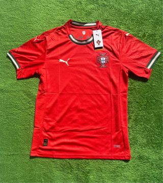Camisola de futebol da seleção de Portugal. - Cor vermelha vibrante. - Logo da Puma bordado. - Escudo da seleção nacional.