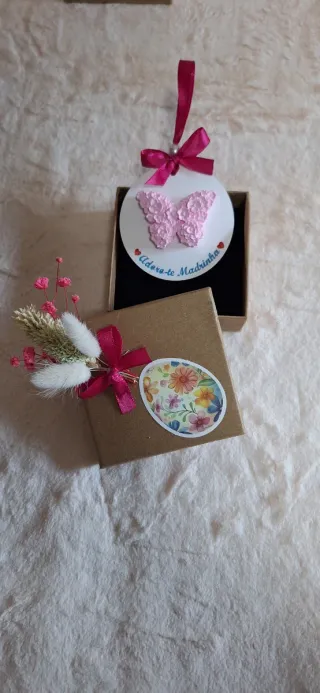 Pendente perfumado com um design delicado e decorativo. - Detalhes em borboleta. - Laço em fita. - Decoração floral. - Motivo de Páscoa.