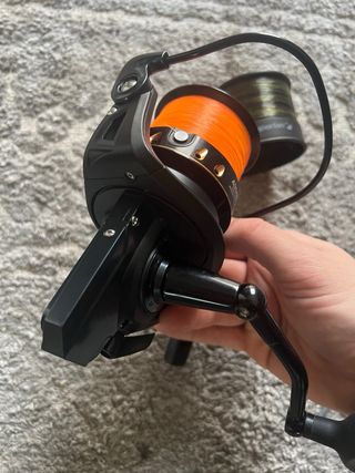 Carreto de pesca Caperlan Adonis 5000 na cor preta. - Inclui bobine extra com linha. - Design moderno e robusto. - Excelente estado
