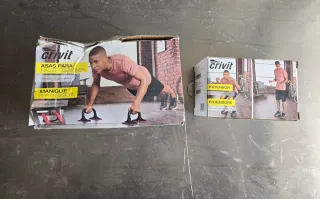 Conjunto de acessórios desportivos da Crivit. - Equipamento para flexões. - Extensor para exercícios.