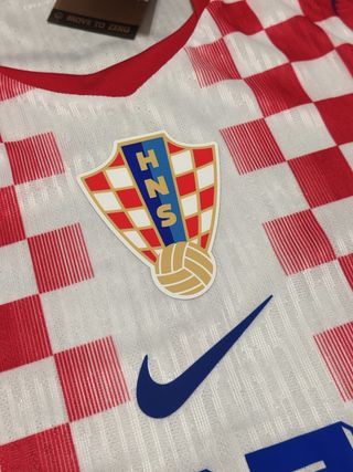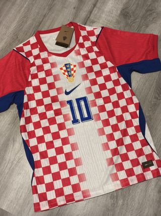 Camisola da seleção da Croácia, com o número 10 de Modric. - Tamanho S. - Design xadrez vermelho e branco. - Detalhes em azul nas mangas e laterais. - Escudo da HNS e logo da Nike. *Versão Player