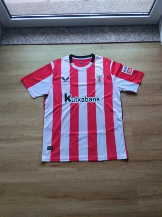 Camisola oficial do Athletic Club Bilbao da marca Castore. Design com as icónicas riscas verticais vermelhas e brancas. - Logo da Castore no peito. - Escudo do clube no peito. - Patrocínio Kutxabank no centro. - Detalhe B2Pay na manga.