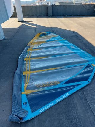 Vela Gun Sails 8.0m Luff 484 e Boom 220 com 2 cambers, em bom estado de 2018, sem nada a apontar.