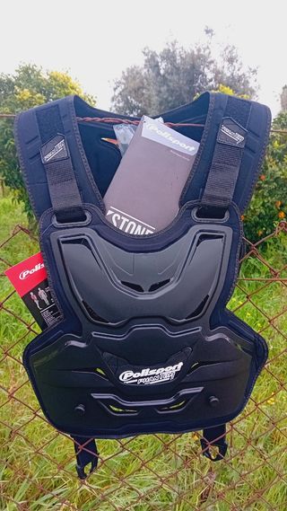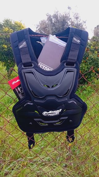 Em conformidade com a norma EN 14021-2003 Elegante, confortável e totalmente adaptável ao corpo Ombreiras feitas com interiores confortáveis, para o melhor encaixe e conforto Ombreiras removíveis que permitem retirar o colete sem retirar o capacete Ombreiras ajustáveis Peças injetadas de elevada resistência Compatível com colares de proteção Porta-número incluído (números não incluídos) Parte dianteira em polipropileno para maior resistência e proteção contra impacto, abrasão e furos Ombreiras confortáveis e resistentes ao impacto Fivelas ajustáveis no peito com sistema de bloqueio rápido Leve Grafismos em TPR (Borracha termoplástic