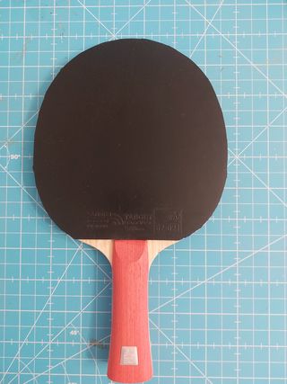 Raquene ténis de mesa, madeira Sanwei V5 Pro com 7 camadas de madeira, borrachas preta/vermelha Sanwei TARGET National. Usada 4 vezes.