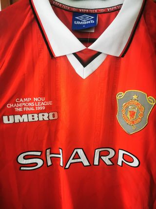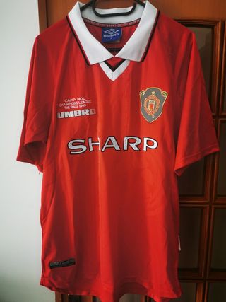 Camisola Manchester United Época 1998/1999 Alusiva ao jogo da Final da Champions League no Campo Nou Beckham 7 Tamanho: XL "Justa" Cor: Vermelho Marca: Umbro Nova Impecável.