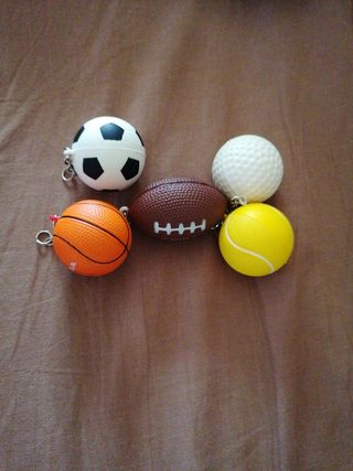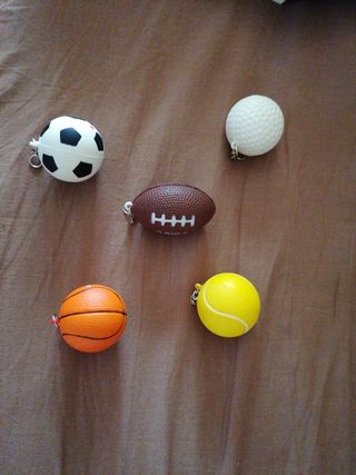 Servem para pendurar ou pôr chave. Bola de futebol, râguebi, basketball golf e ténis