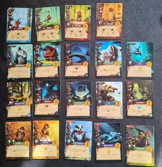 Conjunto de cartas extras para o jogo de tabuleiro Everdell. 93 cartas. - Cartas de Estação: Primavera, Verão, Outono e Inverno. - Cartas de Criaturas e Construções - Cartas de Criaturas Lendárias