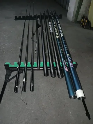 Cana de pesca Amorim com 13 metros de comprimento. 3 Kits com elásticos Sem reparações - Modelo: KIL-V-2 4 SECTIONS HM-30 - Material: Fibra de carbono