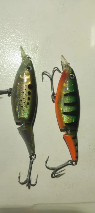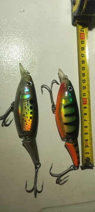 Conjunto de 9 iscas artificiais Rapala Jointed Minnow. São iscas articuladas com acabamento realista. - 9 iscas artificiais Rapala Jointed Minnow. - Peso: 18g cada. - Comprimento: 130mm cada. - Tipo: Flutuante (Floating). - Design articulado para maior realismo na natação. Algumas usadas e algumas novas.