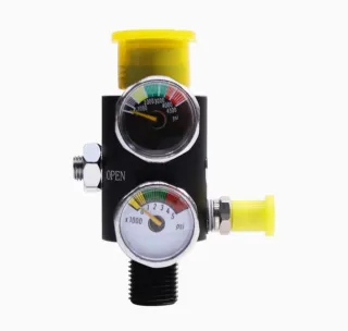 Regulador HPA con válvula pin | 0–3000 PSI | Estación de carga doble manómetro 📝 Descripción Regulador HPA de alta presión con válvula de pin de aire, ideal para sistemas neumáticos, PCP y estaciones de llenado. Características principales: 🔧 Presión de salida regulable de 0 a 3000 PSI 📏 Roscas: M18 x 1.5 y 5/8"-18 UNF 📊 Doble manómetro para lectura precisa de presión 💨 Control estable y seguro del flujo de aire 🛠️ Construcción resistente y duradera 🔄 Ajuste fácil y preciso de la presión Perfecto para llenado neumático, HPA, PCP, paintball y aplicaciones de alta presión.