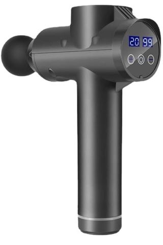 Massajador profissional em cor cinza escuro. - Design ergonómico para fácil manuseamento. - Ecrã digital para visualização de informações. - Botões de controlo para ajuste de intensidade.