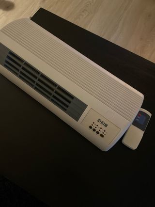 Aquecedor elétrico da marca HJM, pronto a usar. - Design moderno e compacto. - Controlo de temperatura. - Várias velocidades de ventilação.