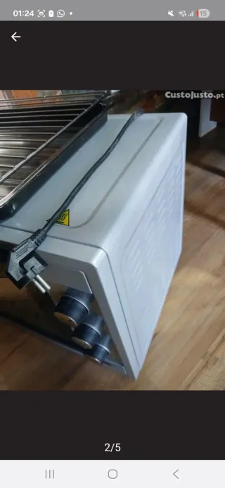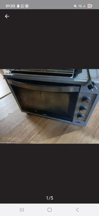Forno elétrico da marca Princess. - Cor cinza. - Com 3 botões de controlo. - Porta de vidro. - Inclui grelha e tabuleiro.