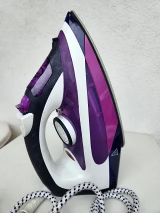 Ferro de engomar com design moderno em roxo e branco. - Base em cerâmica. - Sistema anti-calcário. - Vapor vertical.
