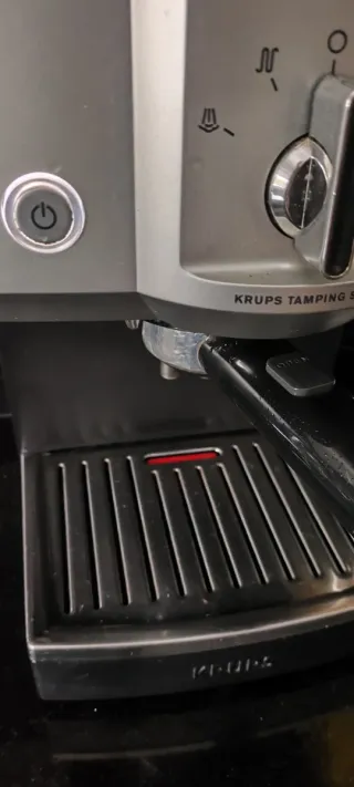 Máquina de café Krups com sistema de tamping. - Design moderno em prata e preto. - Bandeja de gotejamento removível. - Vaporizador para leite. a trabalhar mas põe vezes deita água para o reservatório , desligo e volta a funcionar , será para arranjar