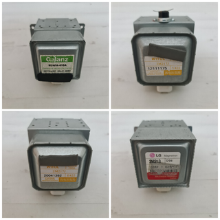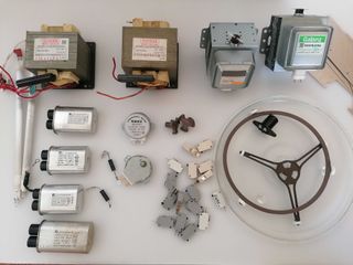 Várias peças para microondas. Por favor indique a peça pretendida para que possa ajustar o preço antes do ato da compra. Magnetrons com fusível térmico incluído-15€ cada Prato 25 e 26cm-5€ Timer temporizador Galanz-5€ 2 Lampadas Grill 750W-10€ Base três rodas para pratos +/- 25cm-5€ Encaixes base de prato-3€ cada Motor / gira pratos-5€ cada Condensadores alta tensão (com ou sem díodo) - 5€ cada Díodo para condensador- 1€ cada Placa de Mica (cortada à medida para o tamanho pretendido) - 2€ Casquilho para lâmpada - 1€ Interruptores / switch - 1€ cada