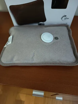 Saco de água quente elétrico da marca SK. Possui um design retangular e uma cobertura em tecido. - Cobertura em tecido. - Design retangular.
