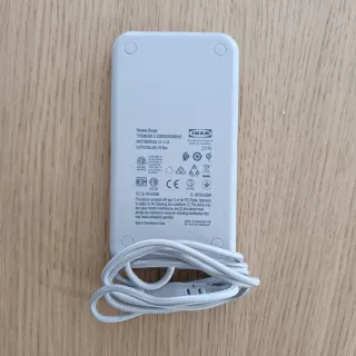 Carregador sem fios com certificação Qi. - Design moderno em tecido. - Inclui cabo USB.