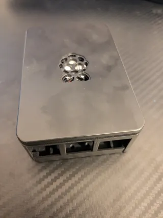 Caixa preta para Raspberry Pi 4. Design moderno e elegante. - Material: Plástico - Cor: Preta - Acesso a portas e ventilação