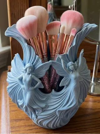 Precioso organizador decorativo con diseño de hadas mágicas, ideal para tener tus brochas de maquillaje ordenadas con estilo. Un toque artístico y de fantasía para tu tocador o estantería. Diseño: Muy detallado con figuras de hadas envolventes. Capacidad: Espacio amplio para sets de brochas, pinceles o incluso como jarrón decorativo. Material: Impresión 3D de alta calidad (PLA), ligero y resistente. Regalo: Perfecto para amantes del maquillaje, la estética "coquette" o coleccionistas de hadas. Hago envíos por Wallapop a toda España e Italia. ¡Escríbeme si tienes dudas!