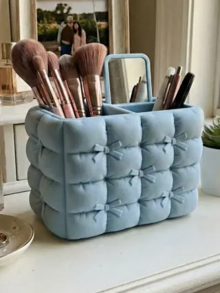 ¡Dale un toque súper elegante y "Coquette" a tu tocador! Este organizador con diseño de lazo y efecto acolchado (puffy) es la pieza de tendencia que necesitas para tus brochas o accesorios. ✨🎀 Diseño Exclusivo: Efecto visual de tela acolchada con un gran lazo central, muy detallado y original. Multiusos: Ideal para brochas de maquillaje, pinceles, lápices de ojos o incluso como un bote de lápices con mucho estilo para tu escritorio. Material: Fabricado con impresión 3D de alta precisión en filamento premium (PLA), resistente y duradero. 📦 Hago envíos rápidos y protegidos por Wallapop Envíos.