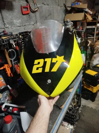 Carenagem de corrida preta e amarela. Frontal, laterales y quilla cortada por lo escape 2t - Design esportivo. - Acabamento brilhante.