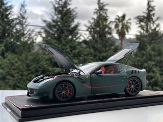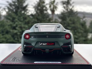Ferrari F12 TDF 2015 Tour de France 1:18 — BBR (Limited Edition / With Box) Beautiful Ferrari F12 TDF (2015 Tour de France) in 1:18 scale by BBR, finished in Argent Matt Green (Verde Opaco). A high-end collectible with outstanding presence and detailing. 📌 Limited edition — 200 pieces worldwide, individually numbered 📌 Argent Matt Green / Verde Opaco finish 📌 Opening hoods & doors 📌 With original box 📌 Acrylic display case included 📌 Rear window is slightly loose, but does not affect the overall aesthetics of the model 📌 BBR premium model 📌 Condition as shown in the photos 📩 More photos or videos available on request