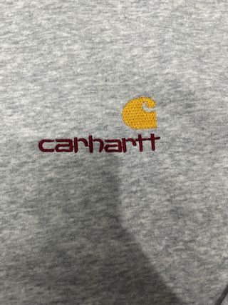 Sweatshirt cinzenta da Carhartt com um pequeno logo bordado.